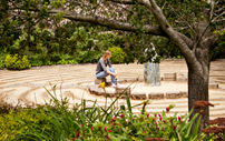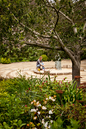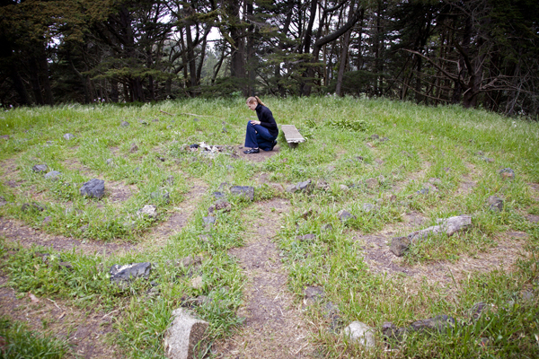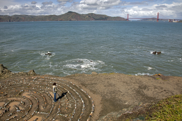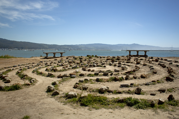 In the sleepy, idyllic town of Half Moon Bay, graced by some of the loveliest beaches in California, a walk along one of its many shoreline trails will lead you to this labyrinth. To wander its rock-lined aisles, accompanied by no sounds but the playful surfs and the flocking birds, is to discover in yourself, and in your environment, a place of peace and contentment. Directions: The Labyrinth is located on the left of the trail five minutes from the parking lot leading to Mavericks beneath the Pillar Point Air Force station.